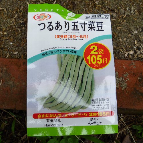 インゲンの種がまだ残っていたので 直播しました。 まき時は3月~8月と書いてあります。 種はダイソーのつるあり五寸菜豆です。 3粒ずつ点播きしました。 ナスといんげんのトマトソースパスタ。 日本パスタ協会HP。 野菜の種類で使い分け。 最適サイズの園芸ネット。 |
