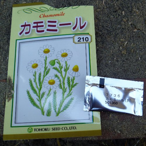 塀の下はレンガで仕切って 砂を入れてあります。 引き抜いて、 1カ所はカモミールを 蒔きます。 袋を開けたら小袋が 出てきました。 種の袋を挿して おきました。 種まき、定植時期の参考に。 トーホクHP やさし砂 鎌いらず |