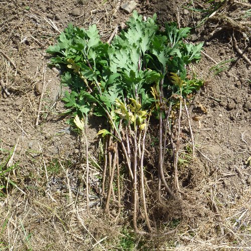 こちらは食用菊の カキノモトです。 去年、植えて 収穫したところから 芽が出て伸びました。 花が大きくならないので 引き抜いて 他の場所に植え替えます。 先端は切ります。 枯れた雑草も すき込んでしまいました。 見た目綺麗ではありませんが 強い植物なので… けっこー適当です。 時間があれば もう2列くらい 植えたいところでした。 楽天でも食用菊の苗が売ってます。 |