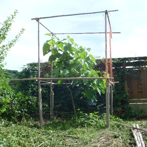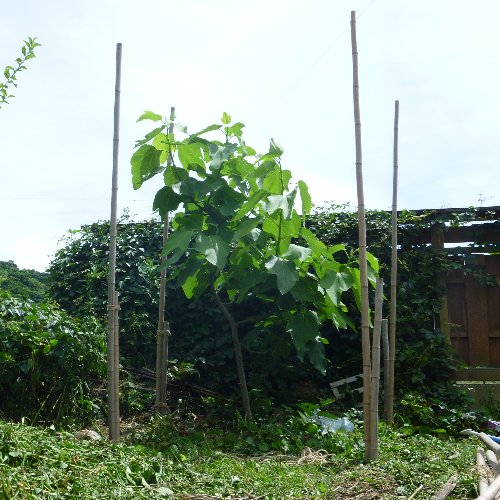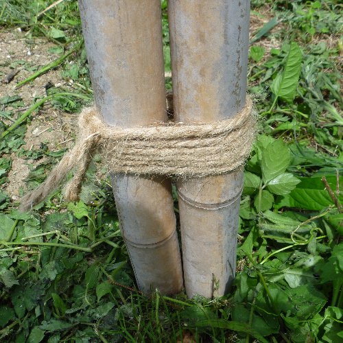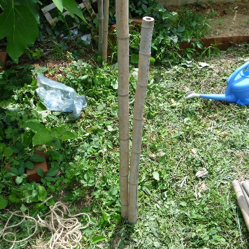 古くなった冬囲いの竹をもらいました、 高くするので地面に竹を打ち込んで 杭にしています。 以前、竹垣を作ったとき 縛り方を勉強しましたが 忘れました。 テキトーです。 各面に横棒を2本ずつ渡して 枠を作ります。 上下が開いていますが まだ実は小さいので 取られる心配はありません。 鳥が羽ばたくスペースが無ければ良いので 上下はヒモを数本渡します。 お役立ちサイト。 歴史などの豆知識 日本ジャム工業組合 【ジャムメーカー】 電子レンジでたったの5分。 簡単にヘルシーなオリジナルジャムが作れる。 |
